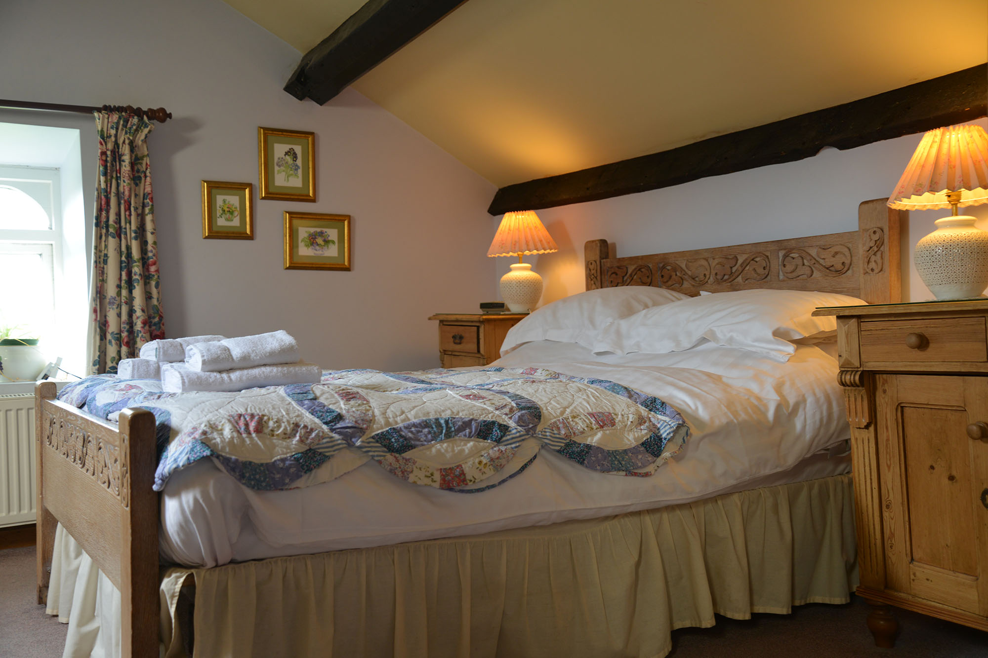 We have two beautiful ensuite bedrooms, a double and a twin, both with spectacular views over part of the breathtaking Yorkshire Dales National Park. They have open beams, attractive antique décor and are the perfect place to relax after a day out in the countryside.
