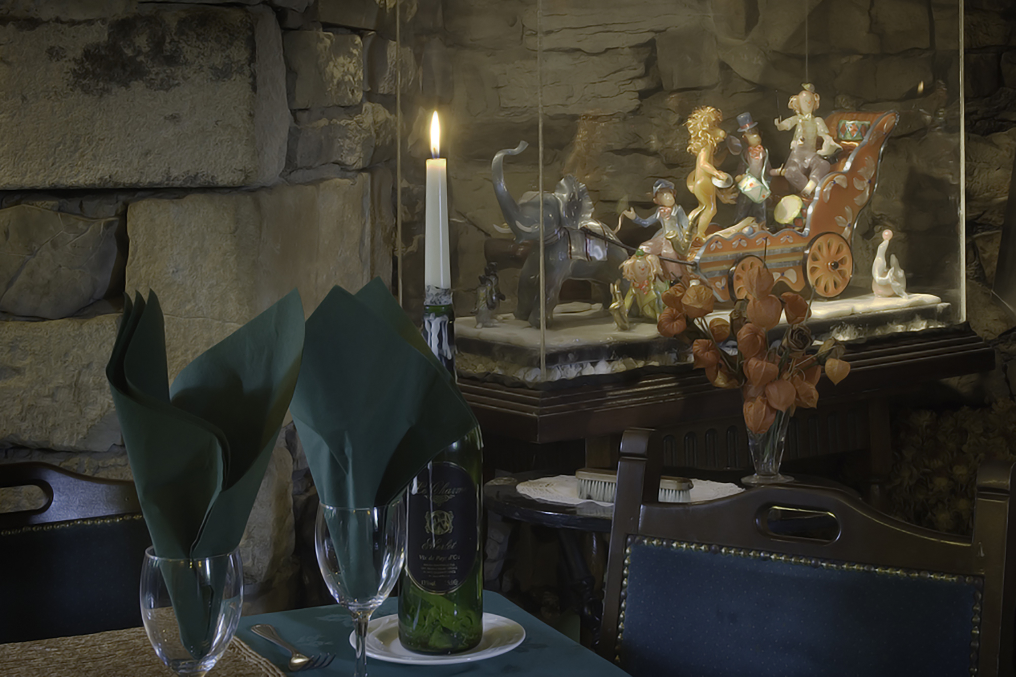 Colin Martin, a famous pastry chef and sugar sculptor extraordinaire, whose spectacular sculptures are on display in the dining room, will create your home-made desserts and wife Sabena Martin, the chef who assembles the mouth-watering home-made meals.